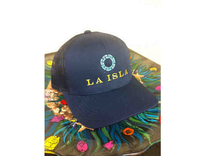 The winning bidder will recieve a La Isla logo Retro Trucker Hat in Navy.