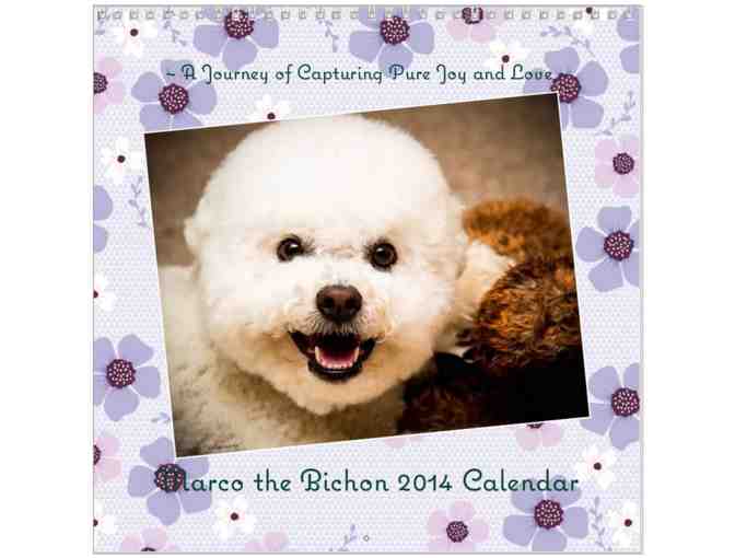 A 12x12 calendar containing one-of-the-kind photos of my Bichon, Marco. I made it through by Shutterfly, and is VERY HIGH quality.
