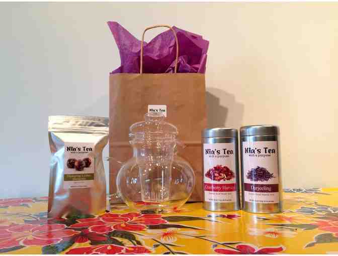 A selection of 3 loose leaf teas (Flowering Litchi Blossom, Darjeeling and Cranberry) and a beautiful glass teapot. The perfect gift for a new or veteran tea drinker.
