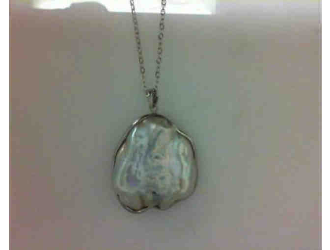 Lady's Sterling Silver Pearl Pendant with One Baroque White Pearl. 18" curb link chain. White Fresh Water Pearl measures 20mm wide and 31MM long in sterling silver