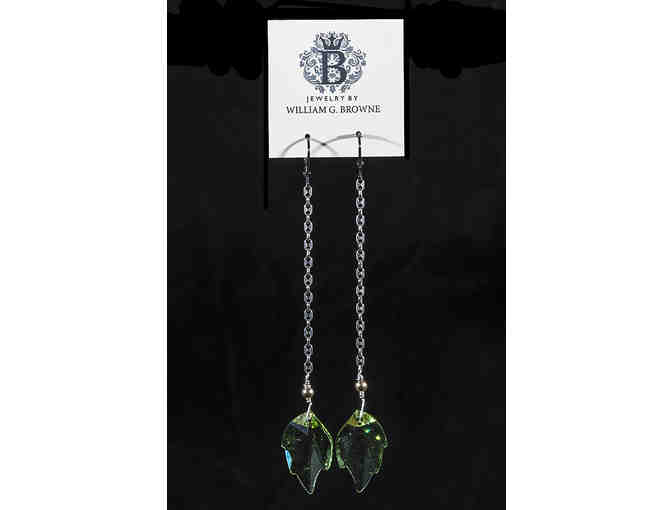 These sterling earrings with a green swarovski leaf design will be a perfect accessory for any wardrobe.