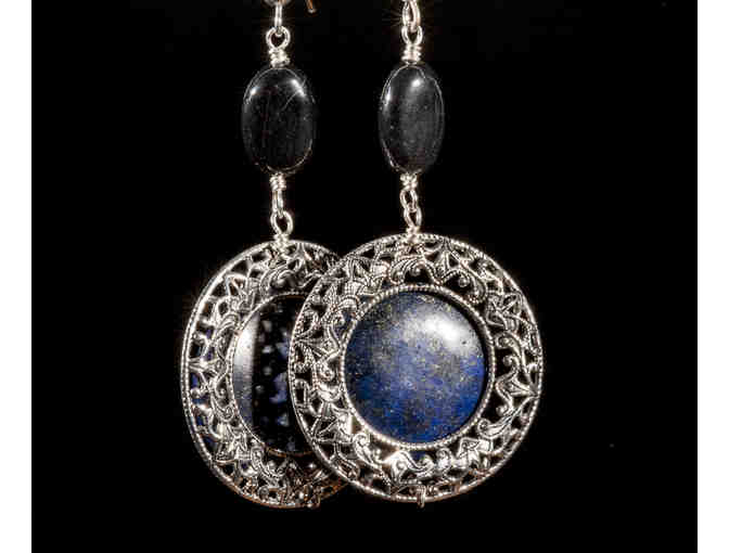These sterling earrings with lapis and onyx accents will be a perfect accessory for any wardrobe.