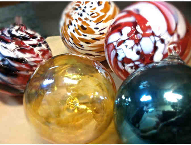 Trim your tree with these 5 assorted glass ball ornaments (they range between about 3 - 4" in diameter) from Artful Home.   Made by North American artists, these hand-blown ornaments will brighten up any room.