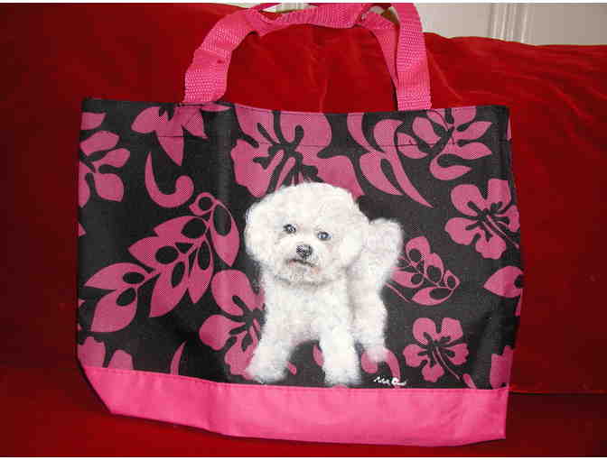 Handpainted Bichon Tote. Black & Pink Canvas. New. Measures 14" X 10".