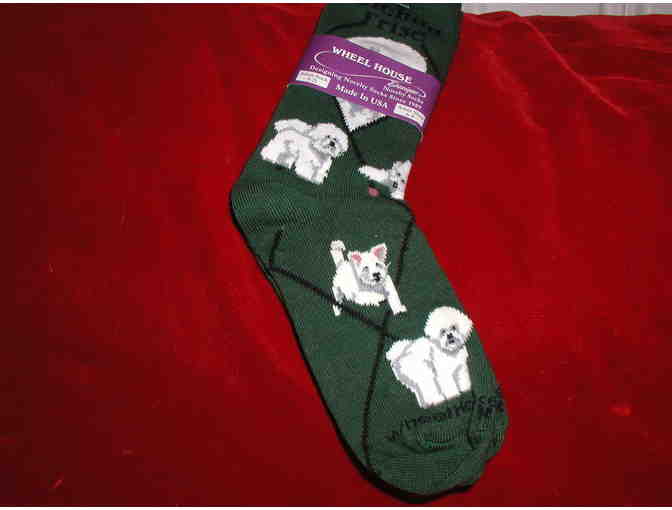 New. Adorable Bichon Socks. Green with different Bichon designs. Ladies.