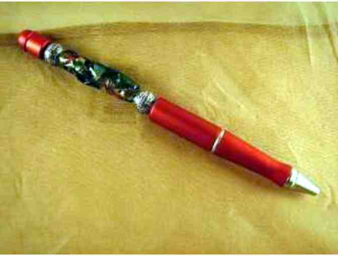 Luminous and dreamy colors mixed with brilliant red make our chic pen an illustration of your truly discriminating taste! Pens can be refilled with standard cartridges available at most office supply stores. The essence of Deb Rich's artistic expression is revealed in each lampwork bead that she creates in her studio. Deb's beads exhibit her desire to create and inspire change through community outreach. These jewelry pieces are offered exclusively through cMarket to support the fundraising efforts of non-profit organizations. Lampwork glass reflects both the heartfelt passion and interpretative expression of Deb Rich. Her artistic resume includes fantasy sculptures, creatively fashioned from found-objects and recycled materials. Deb's Glass Designs are truly hypnotic, one-of-a-kind pieces that cannot be replicated or manufactured by a machine, so items may differ slightly from photos. Deb only sells jewelry pieces that capture the grace and flow of glass artistry. All jewelry is made with Bali-style findings, Czech or Swarovski crystals, and various complementary beads, making Deb's Glass Designs positively the best choice.