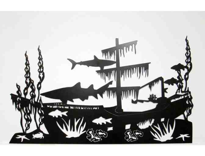 This beautiful laser cut out steel wall decoration was donated to the Drive for Veterans auction by Seats Inc.