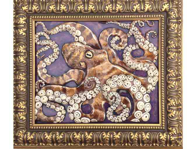 "Octo in Bronze": Framed Original Bas Relief Octopus Sculpture