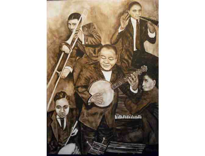 She works in acrylics and mixed media and just as she lived life, likes to try everything. She has great fun experimenting with all mediums and subject matter but her favorite subject is to tell deep stories through portraiture. All agree there is an intensity to the work, most especially in the eyes.
