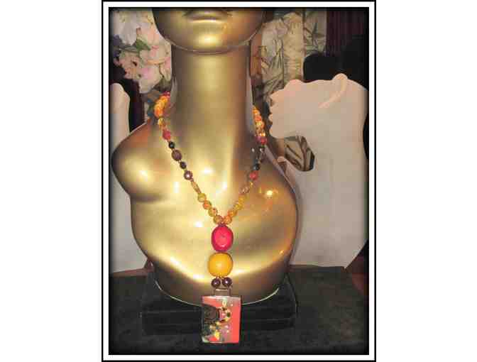 ONE OF A KIND GEMSTONE NECKLACE WITH RUSSIAN ART PENDANT