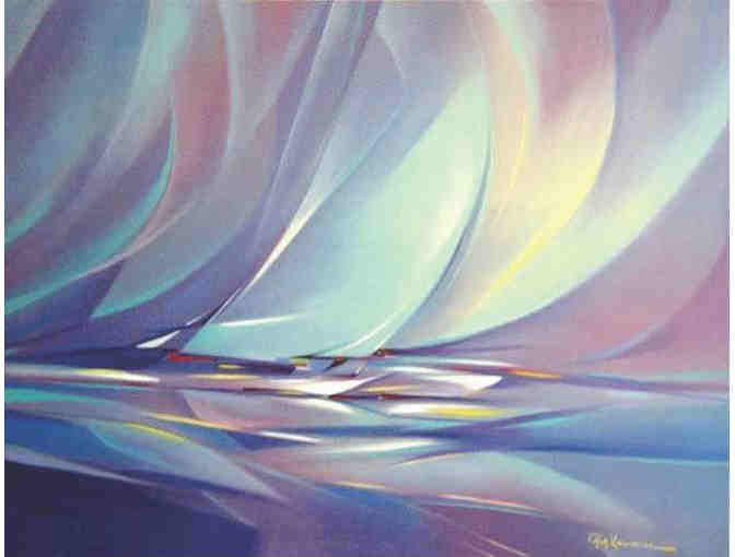 | "Sailing II" Limited Edition lithograph signed & numbered. Unframed. Measures 24 x 31 Artist Rick Lawrence brings to life a wonderful scene with the attention to detail and paint skill that has made him one of the most popular artists of Hawaii. |