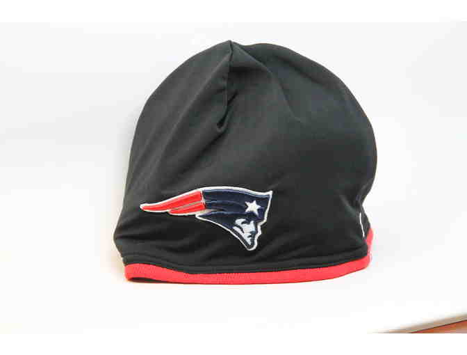 Keep your head warm with this New Era Tech knit hat.  It is a beanie styled black with red trim winter hat that features the Patriots logo on the front