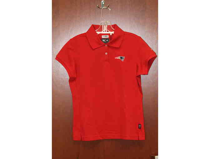 Support the New England Patriots by wearing this red Addidas two button, short sleeve, fitted, polo style shirt. It has the Patriots logo on the front left side. This is an adult medium.