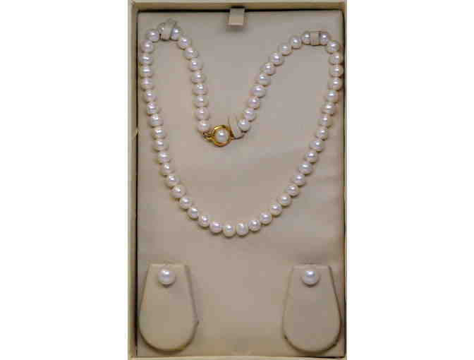 Gorgeous off-white fresh water natural pearl necklace and pierced earrings from Amarsons Pearls in Hyderabad, India is known for its quality and reliability. This set comes with a certificate of authenticity.
