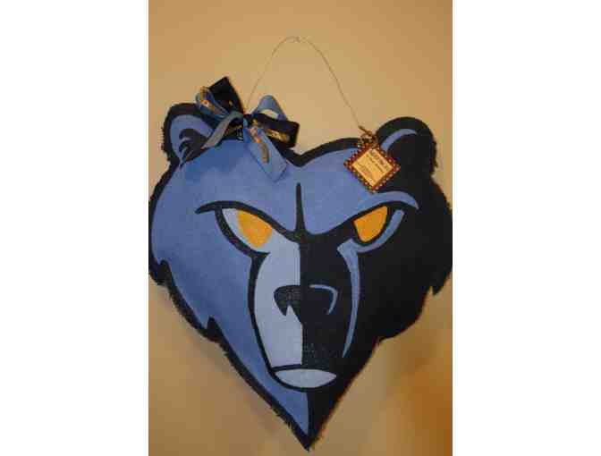 Show your love for the Grizzlies with this unique door decor! Door hanger measures 24 x 26 and is made of three dimensional burlap. Comes with wire hanger and coordinating ribbon. Item is handpainted with acrylics and sealed to withstand the elements.