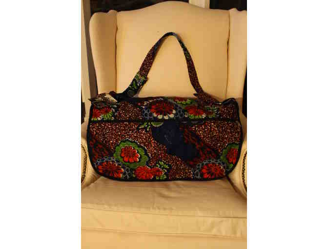 'The perfect travel bag! This large duffel is beautifully quilted with a sturdy, adjustable shoulder strap and lots of zippered compartments, inside and out. Measures 24" x 13" x 10". Handmade by the women of the INEZA sewing cooperative In Kigali, Rwanda.