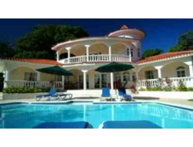 Enjoy 8 days and 7 nights. All Inclusive trip for 4. Up to 4 additional people can be added to this vacation to get to max occupancy for additional cost. Private Crown Villas at Lifestyle Holidays Vacation Club in Puerto Plata Dominican Republic. Spend 7 nights and 8 days on an all-inclusive oceanfront Resort & Spa vacation for FOUR. This private villa vacation well-known for its private atmosphere and comfort represents the ultimate in Caribbean elegance and luxury. The resort boasts over 100 Villas all to the Gold Crown 5 Star Standard. All the villas are spectacular units providing the easy relaxation of the Caribbean in an opulent and elegant ambiance, situated on beautiful green hills or close to the ocean. The Villa has a full kitchen with inside and outside dining. Every room opens to the pool or has an overlooking balcony. The beach is just a 5 to 10 minute walk away. This Villa comes with an exclusive VIP Service Package that provides access to 13 restaurants and 33 bars on this Mega Resort. This includes some private beaches and restaurants. Your group will get a dedicated maid, breakfast chef at your villa, private pool, refrigerator stocked daily with beer, bottle water, juice with cheese and fruite trays. All in your group will also get a free excursion to the Ocean World Marina where you can swim with the dolphins. You also get free airport transfers from the Puerto Plata airport. This is the ultimate family vacation or business meeting getaway.
