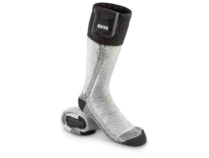 These innovative Heat Sox keep you warm without being too hot. Made of 65/35 wool / nylon yarn. Remove battery pack before washing. Hand wash in warm water, lay flat to dry. Imported.