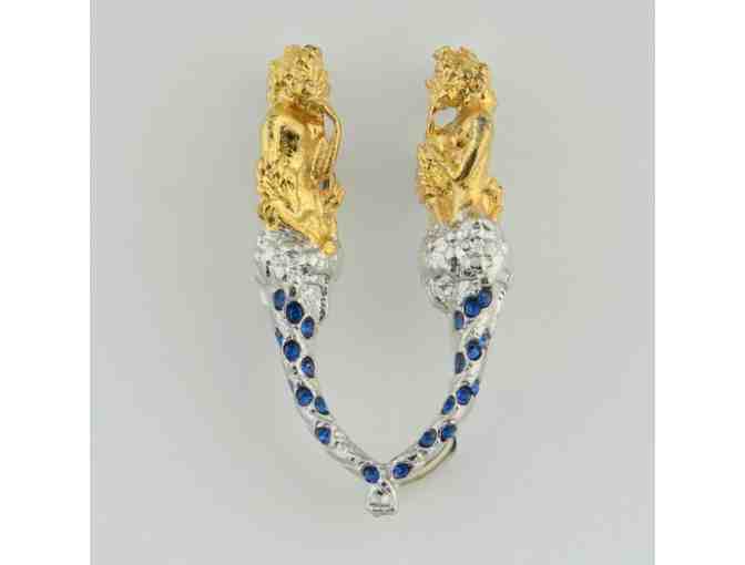 THIS IS YOUR GOLDEN OPPORTUNITY TO OWN A GENUINE ERTE ART DECO CREATION! From an original design by the “Father of Art Deco”, Erte’s famous “Alphabet” series was first a Suite of Serigraphs and then a priceless collection of figures cast in precious metals set with gemstones. We are pleased to present this sparkling Pendant/Brooch depicting the letter “D”, made of solid gold-plated Sterling Silver and hand-set Swarovski crystals, cast from the same mold used to create the original! This piece comes in a simple and pretty gift box with the Erte stamp on it. Officially Licensed by the Estate of ERTE, bearing the official stamp of his signature! Measures approx. 1.5" x 1", 3.6 grams (weight).