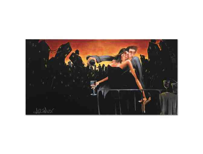 Combining his passions for music and art, David Garibaldi creates visual poetry. "City Lights & Love" is a limited edition giclee on stretched canvas, R numbered and bearing the artist's authorized signature. This piece is gallery wrapped and ready to hang. Includes Certificate of Authenticity! Measures approx. 24" x 12" (image). INSURED FEDERAL EXPRESS SHIPPING, HANDLING PROCESSING: $59.95