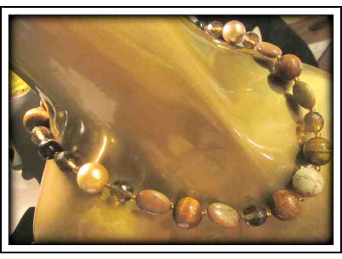 Featured Components: South Sea Golden Shell Pearls, Smokey Topaz, Tiger's Eye, Jasper, and Black Onyx