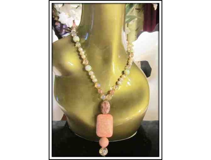Featured Components: Genuine Pink Turquoise, Painted Porcelain Beads, rice Pearls and Pink Aurora Bead Accents