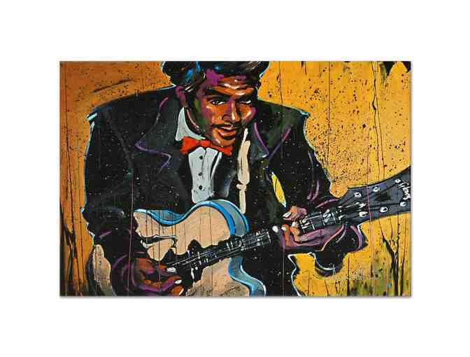 Combining his passions for music and art, David Garibaldi creates stunning visual poetry. "Chuck Berry (Chuck)" is a limited edition giclee on stretched canvas, numbered and bearing the artist's authorized signature. This piece is gallery wrapped and ready to hang. Includes Certificate of Authenticity! Measures approx. 24" x 18" (image).