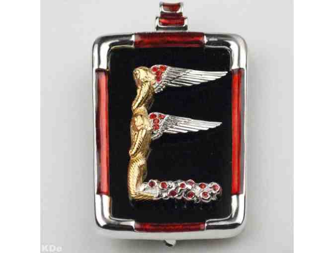 From "The Father of Art Deco" ERTE! Dazzling "E"-Shaped Pendant/Brooch, made of Gold Plated Sterling Silver Set on Onyx Backing with Hand-Set Swarovski Crystals!