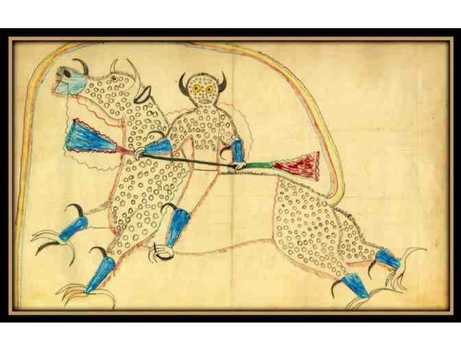 NATIVE: "BLACK HAWK SPIRIT BEING" LEDGER DRAWING BY LAKOTA SIOUX CHIEF