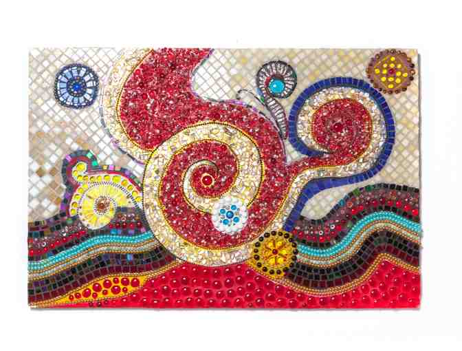 "My Red Tide One was heavily influenced by vintage graphics, swirls and flourishes. It is an abstract of water with flowers being sucked into a red vortex."