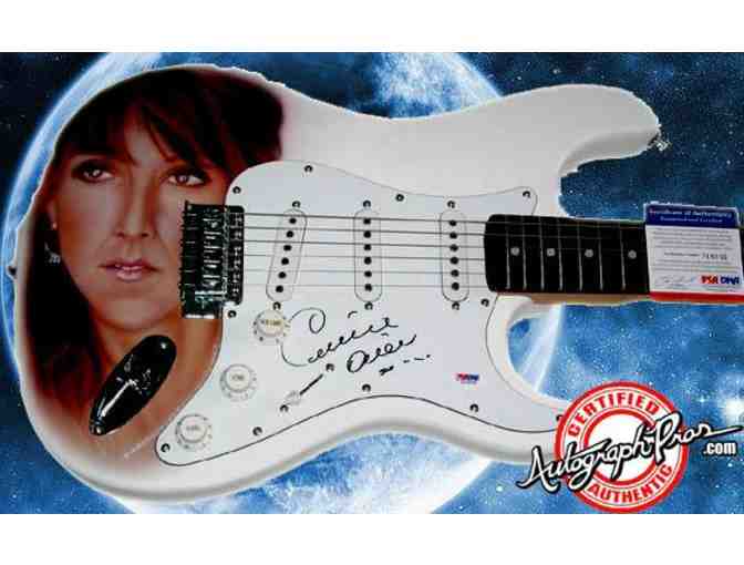 THIS IS A GUITAR WITH CUSTOM AIRBRUSH ARTWORK HAND SIGNED IN PERSON BY CELINE DION. A CERTIFICATE OF AUTHENTICITY WILL BE INCLUDED FROM UACC REGISTERED DEALER #237 / 2011 UACC AUTOGRAPH DEALER OF THE YEAR!!PSA/DNA HOLOGRAM HAS BEEN APPLIED AS THIS HAS BEEN EXAMINED AND CERTIFIED AUTHENTIC FROM PSA/DNA, THE WORLD'S LARGEST 3RD PARTY AUTOGRAPH AUTHENTICATION FIRM.