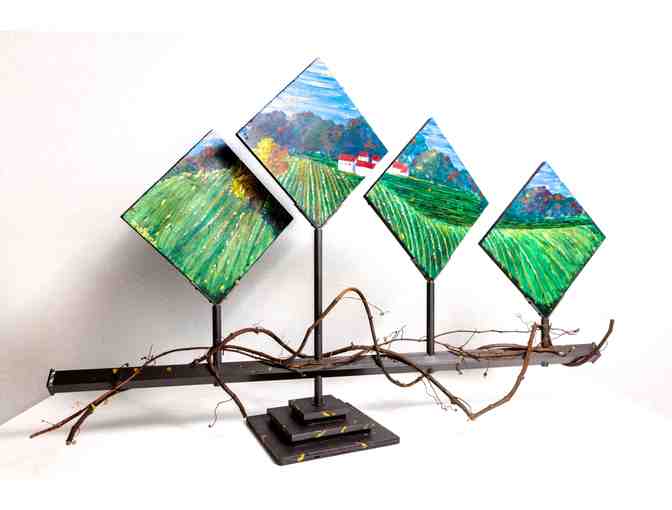 "I wished to create a kinetic and versatile centerpiece themed around a winery. "