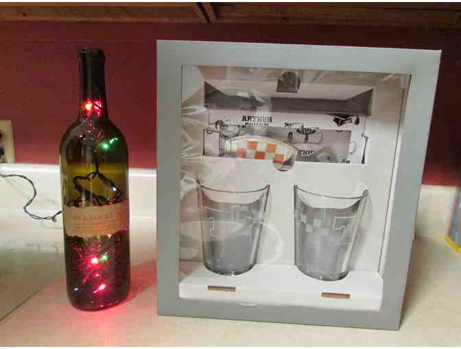 Tennessee Arthur Court glasses and opener, TN Rocky Top bottle with lights