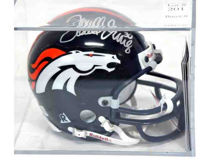 Authentic Denver Broncos mini helmet personally autographed by the great Georgia Running Back Terrell Davis.