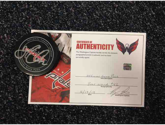 Official match puck autographed by The Washington Capitals right wing Joel Ward #42