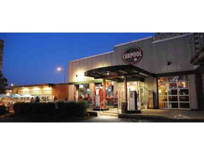 Carpool donates a $50 gift card! Enjoy drinks while playing games at one of the 8 pool tables, two skee ball machines, four shuffleboards and seven dartboards, and two patios that are open when weather permits.