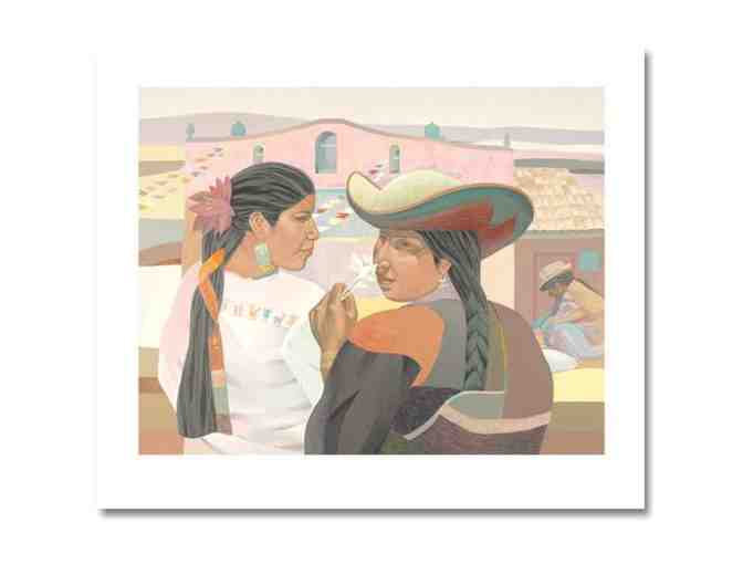 With soft pastel colors and an eye of intriguing composition, Mario Cespedes creates memorable works of art. "Fiesta Del Sol" is an extremely limited edition serigraph on paper that is HC numbered in verso 33 out of only 50, and is hand signed by the artist Mario Cespedes. Includes a Certificate of Authenticity. Measures approx. 40" x 34" (with border), 34" x 27" (image). Gallery List Price: $1,250.00