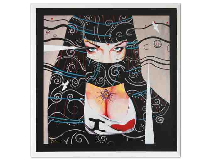 With a fusion of cultural imagery and modernistic elements Giorgio Casu creates vibrant and eye catching works of contemporary art deeply rooted in pop culture. "Valkyrie" is a limited edition giclee on canvas by Giorgio Casu, numbered and hand signed by the artist. Includes Certificate of Authenticity! Measures approx. 28" x 27.5" (image).