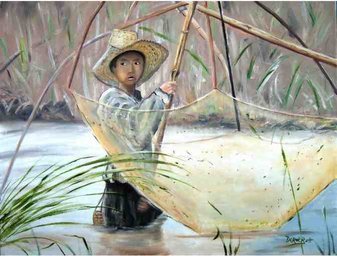 "Young Boy Net Fishing" by Artist Derek Rutt: 10x12" Canvas!