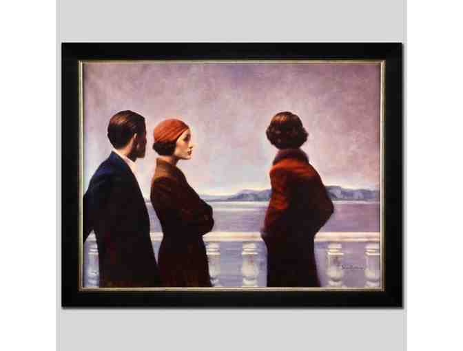 Hamish Blakely's impeccable use of light and shadow makes his portraits captivating and mysterious. "Silence at Dawn" is a framed limited edition giclee on canvas mounted on board, numbered and hand signed by Blakely. Measures approx. 42" x 33" (with frame), 37" x 28" (image). ** Please note that there is some wear and tear along the edges of the frame noticeable only upon close inspection. Also, the frame needs to be wired for hanging. The artwork is being auctioned with this in mind. **Gallery List Price: $2,100.00