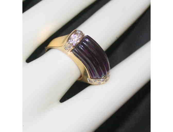 COUTURE BAMBO CUT DEEP AMETHYST, DIAMOND RING IN 14 KT GOLD!