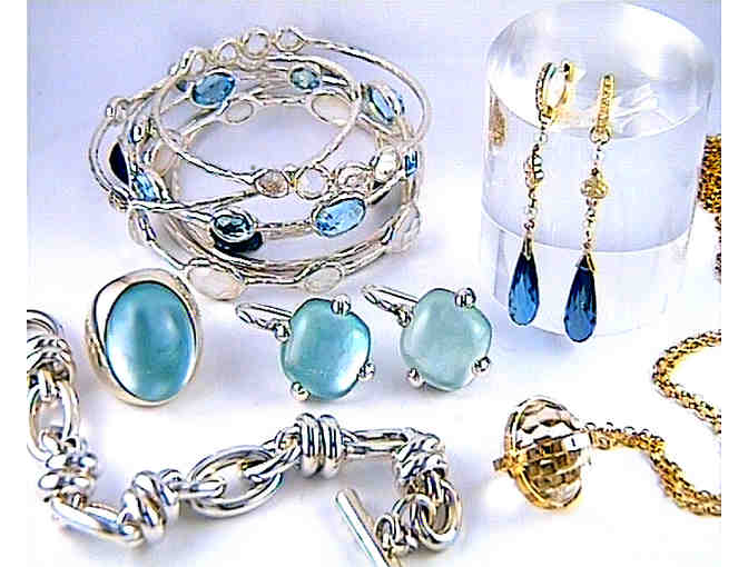 2. STAX of bracelets! Seven Sterling Silver Designer Bangles from Ippolita. Wonderland eight station rock crystal sterling silver bracelet (retail value, $595); Wonderland 5 station indigo sterling silver bracelet (retail value, $595); Wonderland bangle trio with 2 sterling silver bangles and one sterling silver bangle with 5 crystal quartz stations (retail value, $495); Rock Candy eight station blue topaz sterling silver bangle bracelet (retail value $1,195); Rock Candy eight station mother of pearl doublet sterling silver bangle bracelet (retail value $650)