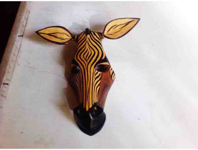 This wooden mask is handcarved and hand-painted by skilled artisans. It is a great gift for any animal lover, and will work as a funky decoration for a child's room or anywhere else in the house. Approximately 6x10x3 inches. Please bid generously!