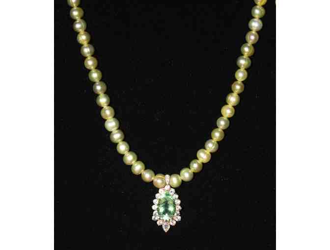 RARE! FLOURITE/DIAMOND ENHANCER W/PISTACHIO PEARLS AND MATCHING PEARL BRACELET!