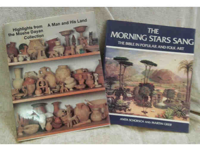 Here are two hard-to-find books that bring us closer to our heritage: In A Man and His Land, Teddy Kolleck writes that Moshe Dayan's collection of antiquities highlighted his love of collecting and his love of the land of Israel and its heritage. This is an Israel Museum publication. Morning Stars Sang is a look at Biblical themes through the folk arts of needlework, drawing, papercuts, prints, and more. These two books are gifts from the extensive library of Miriam Frankel.