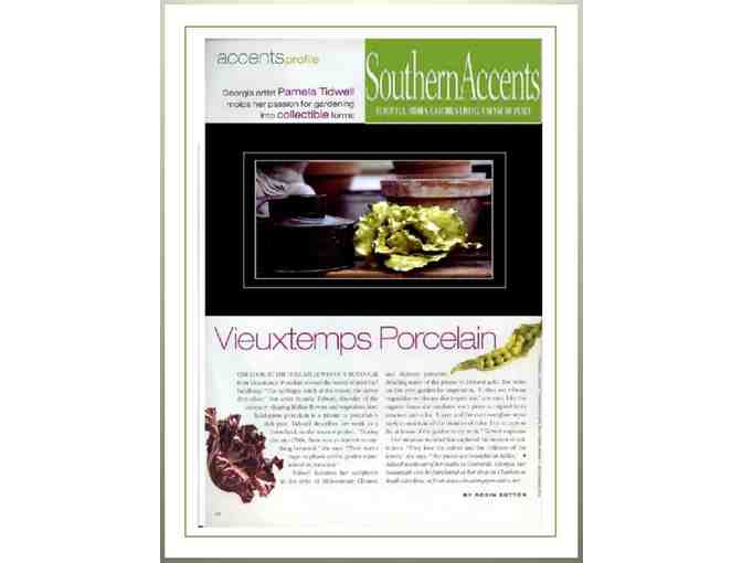 Vieuxtemps, Charleston's largest selection of china, crystal, and silver has an array of elegance, including but not limited to these handmade porcelain potted flowers crafted by Pamela Tidwell. An exquisite adaption of nature in the style of 18th century Meissen and Chinese porcelain. Each piece is sculpted entirely by hand, in hard paste porcelain and painted with richly colored glazes. Primarily working with botanicals she draws inspiration from the garden. Her fascination with nature and the garden has been a lifelong passion. She began working with porcelain clay over 20 years ago strictly as an outside interest, beginning with fruits and vegetables and eventually adding flowers. She brings her love of all things beautiful to individual fruits, vegetables, and floral compositions. Her work has been featured in Southern Accents Magazine and Veranda.com.