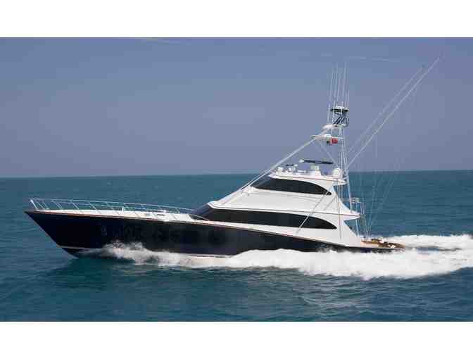 Enjoy dinner for eight aboard an 86-foot Jim Smith custom Sportfish boat, beautifully decorated in an English Manor style. Partake in great food and the company of good friends, along with fabulous atmosphere as you cruise the Charleston harbor in this luxurious private yacht.