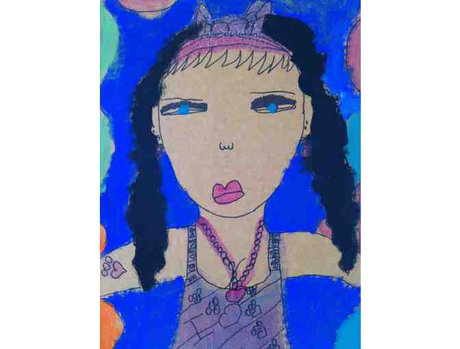 Tempra paint on cardboard with glitter, matted, 24" h x 18" w