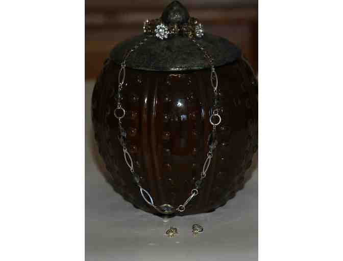 This beautifully handmade 18" chain necklace with various shades of champagne beads, a matching bracelet and earrings can make any outfit sparkle! (Earrings are sterling silver.)