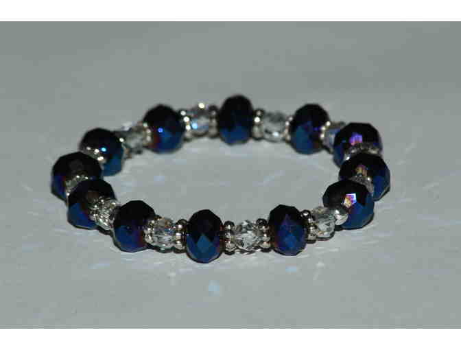 Accessorize with this beautiful blue and white colored beaded bracelet that sparkles!